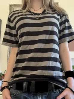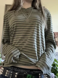 Women’s Fall Casual Tops Stripe Graphic Loose Fit T-Shirts Long Sleeve Crew Neck Pullovers Y2K Aesthetic Clothes