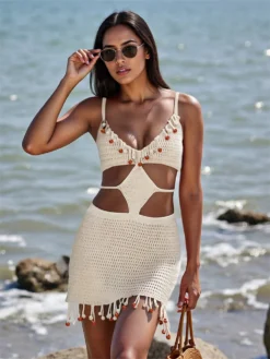 Women Knitted Tube Dress Strapless Hollow Out Bodycon Long Dress Summer Casual Elegant Y2K Clubwear