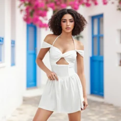 Women Spaghetti Strap Dress Solid Color Heart Metal Ring Cutout Sleeveless Backless Bodycon Dress Elegant Sexy Club Dress