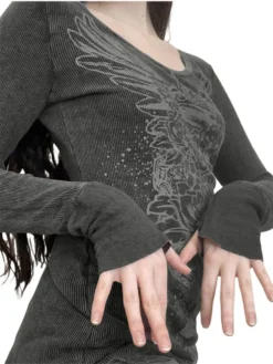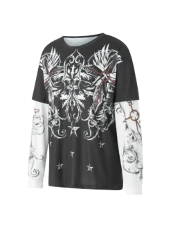Women Long Sleeve Tops Gothic Graphic Print T-shirt Spring Fall Slim Fit Tee Tops Casual Shirts Y2K Aesthetic Clothes
