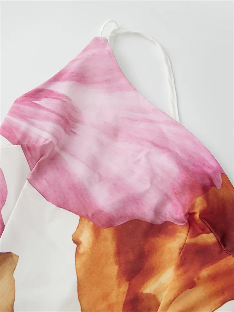 Women’s Summer Long Cami Dress Sleeveless Flower Print One Shoulder Beach Dress