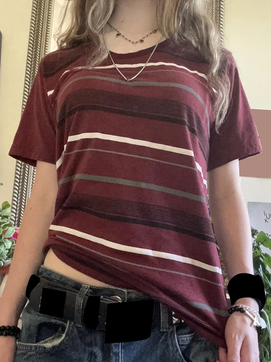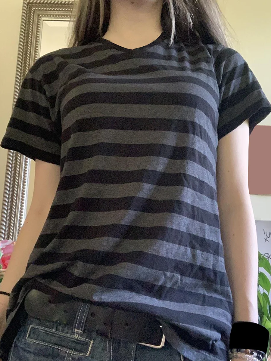 Y2K Aesthetic Fairy Grunge T-shirt 90s Striped Short Sleeve Pullover Tees Aesthetic Grunge Gothic Clothing Streetwear